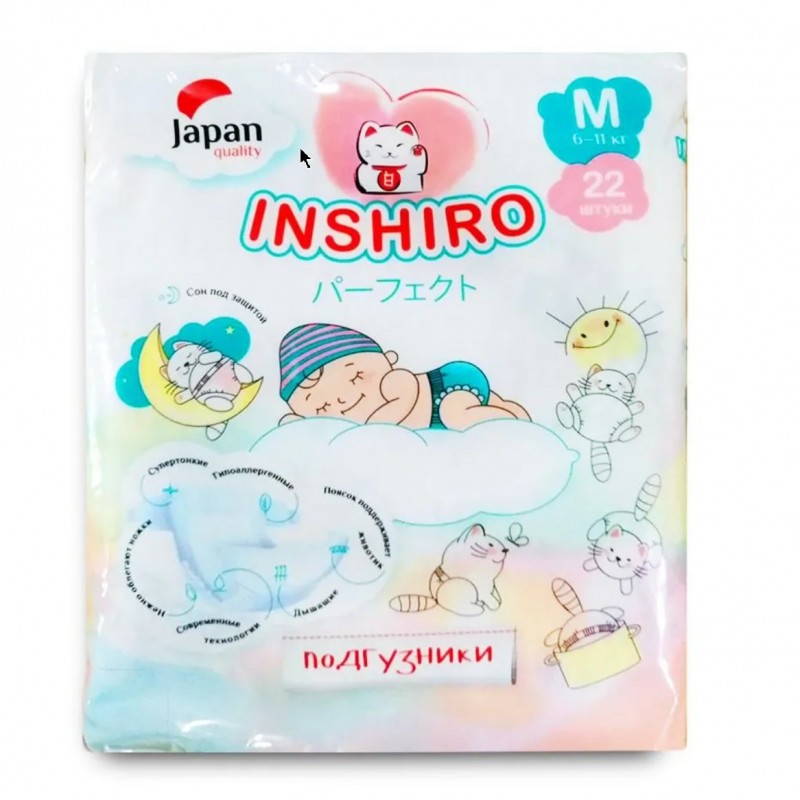 Преимущества подгузников INSHIRO: - Гипоаллергенные - Дышащие - Многоразовые застежки. - Необычайно нежный материал - дарит малышу ощущения мягкости и комфорта и не натирает нежную кожу малыша. - Инновационный - практически не весомый подгузник не стесняет движения - Высокая посадка - нежная резинка облегает животик и фиксирует подгузник, исключая протекания - Двойные ободочки - обеспечивают дополнительную защиту от проникания вокруг ножек - Супер тонкие - благодаря абсорбенту нового поколения, подгузники стали еще тоньше и легче - Нет комочкам - современный абсорбент нового поколения моментально впитывает влагу, распределяя ее равномерно, сохраняя однородную, удобную структуру. - Мягкий внутренний пористый 3D слой - хорошо удерживает жидкий стул, что особенно важно для малыша. - Индикатор - меняя цвет, подскажет вам когда менять подгузник. - Впитывает до 12 часов - влага не скапливается, кожа малыша остается сухой даже после ночного сна. - Специальная структура - обеспечивает максимальную воздухо-проницаемость подгузника и не дает образоваться парниковому эффекту. Кожа малыша всегда остается сухой. Аргументы: - Гипоаллергенный наполнитель; - Отсутствие парабенов, отдушек, хлора – никакого постороннего запаха; - Скроены по фигуре ребенка «европеидного типа» - не маломерят, не большемерят; - Быстро впитывают за счет инновационного наполнителя из Японии; - Долго удерживают влагу внутри, оставаясь сухими снаружи, им не страшен даже жидкий стул; - Нежная поверхность подгузника как в наружном слое, так и во внутреннем.