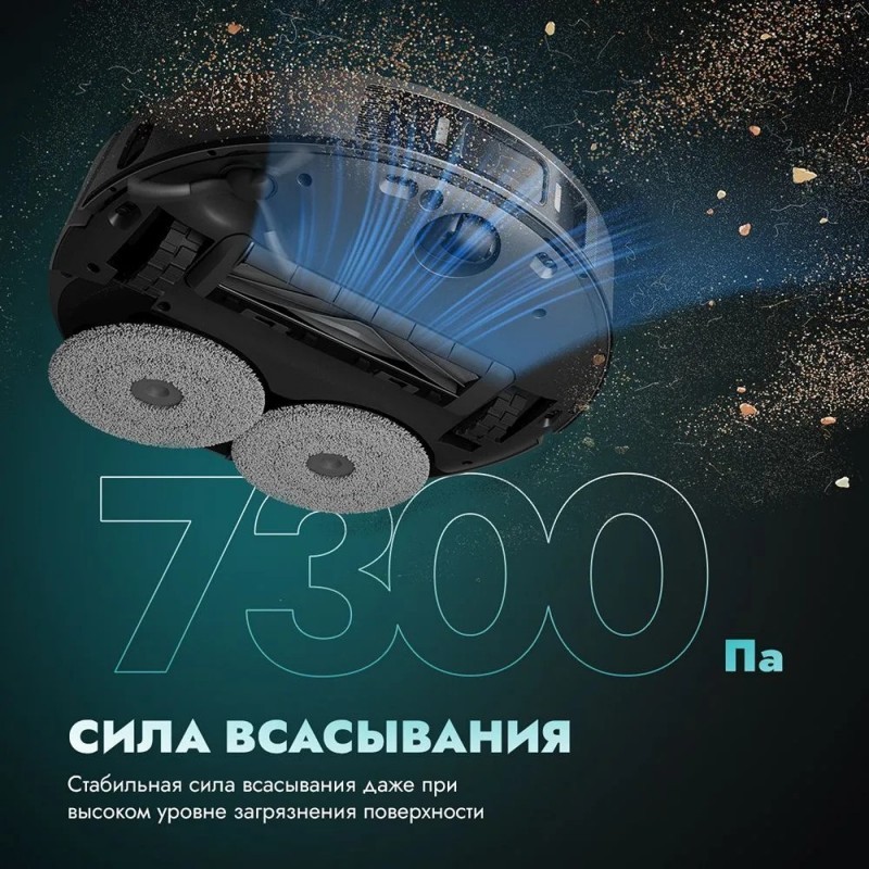 Роботизированная технология MopExtend™️. Интеллектуальный алгоритм обеспечивает более тщательную уборку вдоль стен, так что пылесос охватывает всю поверхность пола. Автоматическая очистка швабр в горячей воде при 58℃ CleanGenius™️ Мощность всасывания — 7300 Па Индивидуальная настройка очистки ковров Тщательное удаление загрязнений за счет давления и вращения швабр