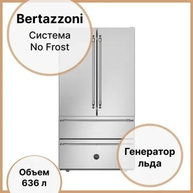 Двухкамерные холодильники не занимают избыточно много места на кухне и обеспечивают все необходимые диапазоны температур для любых продуктов. В приборах с разными контурами охлаждения секции охлаждения и морозильной камеры можно регулировать отдельно. В морозильной камере NoFrost, помимо стандартных контейнеров, Вы найдете просторный контейнер, в который без труда помещаются самые „крупногабаритные“ продукты. Холодильник ноу фрост - это аппарат, в котором применяется способ охлаждения с помощью циркулирующего воздуха. Потоки равномерно распределяются по холодильной камере и морозильному отделению, предотвращая появление перепадов температуры. Это избавляет позьзователя от необходтмоти вручную удалять скопившуюся из-за образования конденсата наледь. Двухкамерный холодильник, оснащенный двумыя независимыми отсеками с разлиными диапазонами температур - это оптимальнй выбор для дома и квартиры. Особенности: Категория: Холодильник Тип холодильника: Холодильник French Door Серия: Professional Тип установки: Отдельно стоящий прибор Управление: Сенсорное Дисплей Полный No Frost Зона свежести Режим "Суперзамораживание" Автоматический льдогенератор Скрытая панель управления Светодиодное освещение Сигнал открытой двери Внешняя отделка: Нержавеющая сталь без отпечатков пальцев Стиль ручки: Профессиональный Количество полок: 4 регулируемых по высоте + 1 фиксированная Ящики холодильника: 1 большой с заданной температурой + 2 средних с регулируемой влажностью Бункеры: 6 Выдвижные ящики для морозильника: 2 Характеристики: Класс энергопотребления: Е Общий полезный объём холодильника: 449 л Полезный объем морозильной камеры: 187 л Мощность замораживания: 1.4 кг/24 час Напряжение: 220-240 В Частота: 50 Гц Габариты прибора (без ручек) (ВхШхГ): 1775х910х620 мм Цвет: Нержавеющая сталь